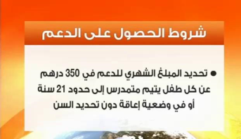 أعلنت وزارة الداخلية أنه تقـرر إيداع طلبات الاستفادة من الدعم المباشر للنساء الأرامل في وضعية هشة الحاضنات لأطفالهن اليتامى بمقر القيادة أو الملحقة الإدارية لمحل سكنى النساء المعنيات بالأمر, وذلك استهدافا للقرب, وأوضحت الوزارة في بلاغها أنه تم تحديد مبلغ شهري 350 درهم عن كل طفل يتيم متمدرس إلى حدود سن الحادية والعشرين أو في وضعية إعاقة دون تحديد للسن.